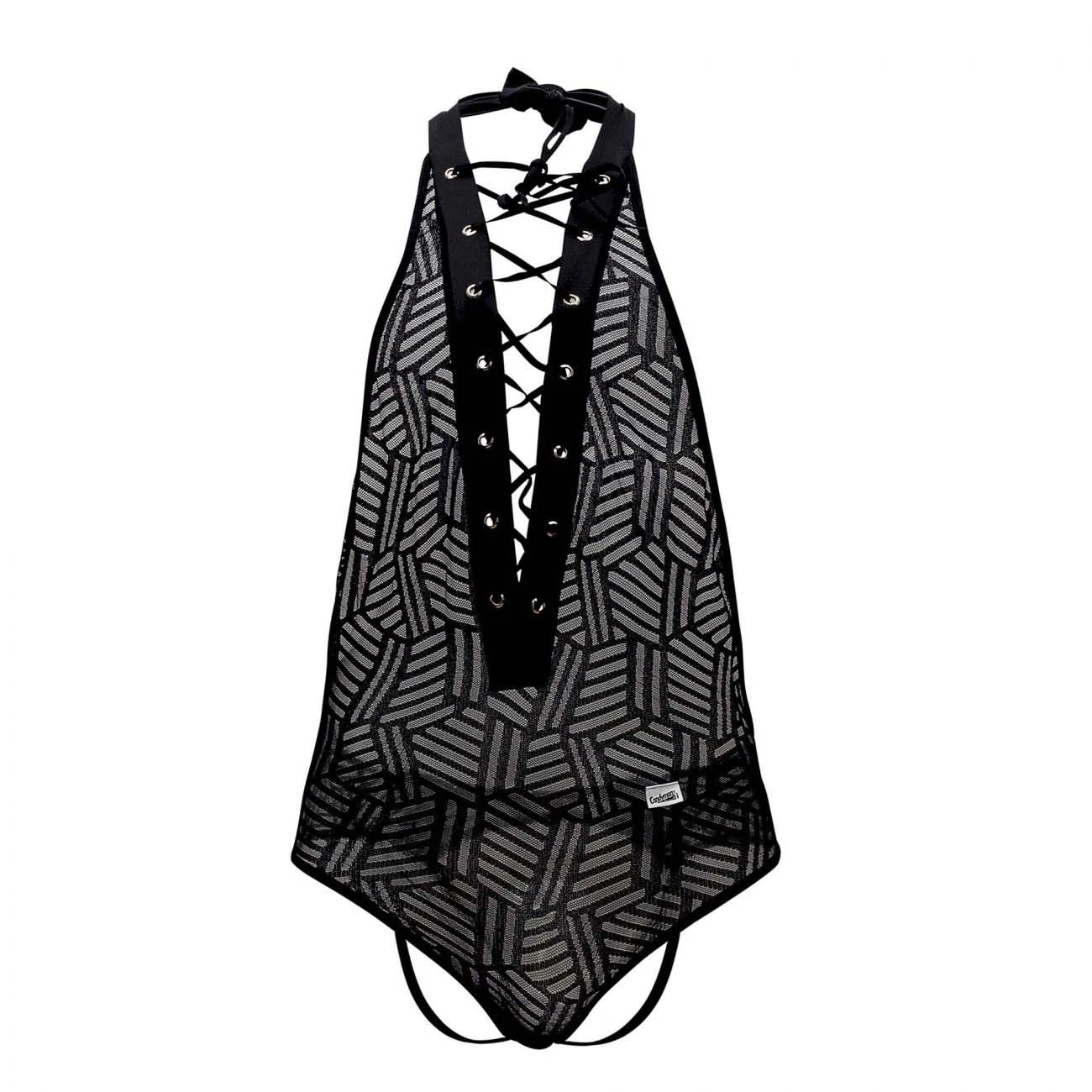 Body Candyman 99436. Body très sexy qui joue la carte de la sensualité avec des lacets sur le devant. Semi-transparent, il vous rendra plus sexy que jamais. Ouvert à larrière. 90% Nylon, 10% Elasthanne.
