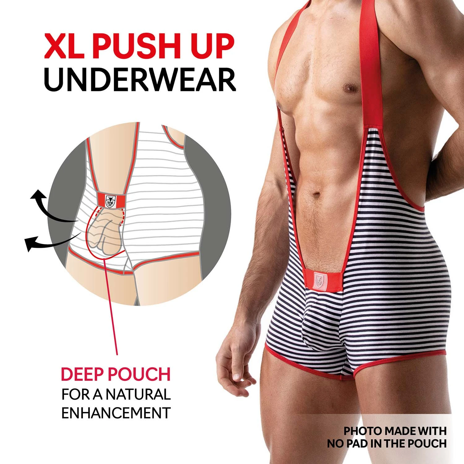 Body Stripes TOF PARIS TOF104R. Body sexy dans une coupe ajustée avec des bretelles extensibles. Tissu coton strech. La poche avant doublée permet un effet Push up. Bandes élastiques rouges mettant en valeur les épaules, le dos en y dessinant un Y. Ecusson au nom de la marque sur le haut de la poche frontale. 96% Coton, 4% Elasthanne.