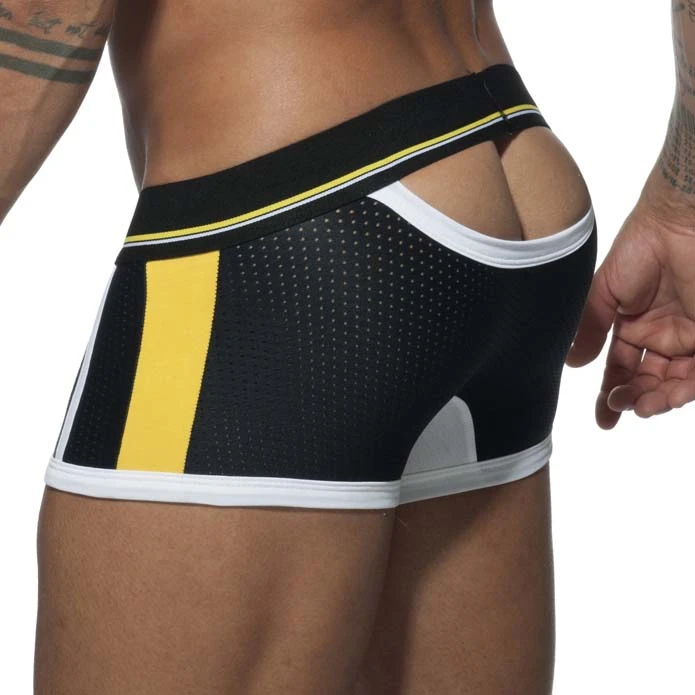 Boxer Empty Bottom Addicted Open Sport AD741. DĂ©couvrez le confort extrĂȘme de ce Boxer Empty Bottom en tissus mesh. DotĂ© dune poche qui met en avant vos atouts. Ceinture Ă©lastique avec le nom de la marque ADDICTED. Ouvert sur le haut du derriĂšre. 85% Polyamide, 5% Coton, 10% Elasthanne.