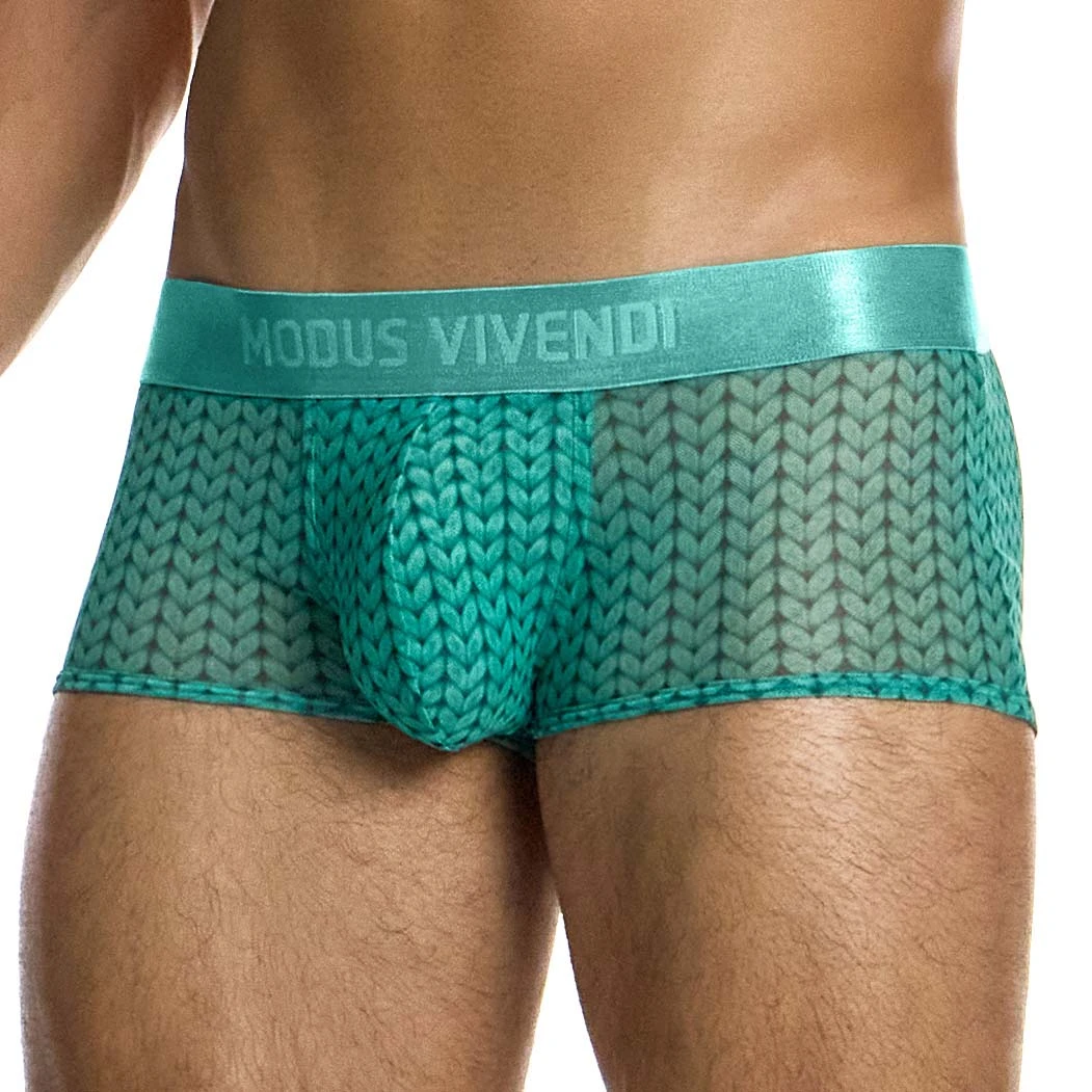 Boxer Illusion Modus Vivendi 04521. MODUS VIVENDI présente sa nouvelle collection : Illusion. Des sous-vêtements fabriqués en tissu maille, semi transparent. Avec un imprimé donnant lillusion dun tissu tricoté. Coupe taille basse et Boxer minimaliste. Poche frontale non doublée. Etiquette logotée Modus Vivendi cousue sur la ceinture. 92% Polyester, 8%Elasthanne.
