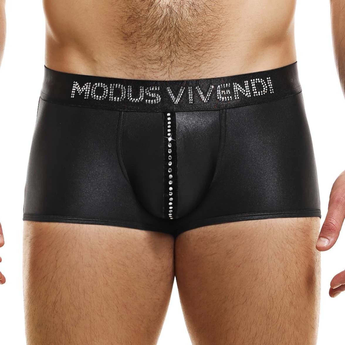 Boxer Modus Vivendi Flashy 19321. Boxer idĂ©al pour ĂȘtre portĂ© toute la journĂ©e ou lors dune soirĂ©e. Tissu fin satinĂ© Ă©lastiquĂ©, ruban de velours dĂ©coratif cousu sur le devant avec des pierres de cristal. Le logo Modus Vivendi est soigneusement placĂ© Ă lavant avec des pierres de cristal thermo-gaufrĂ©es. 90% Polyester, 10% Elasthanne.