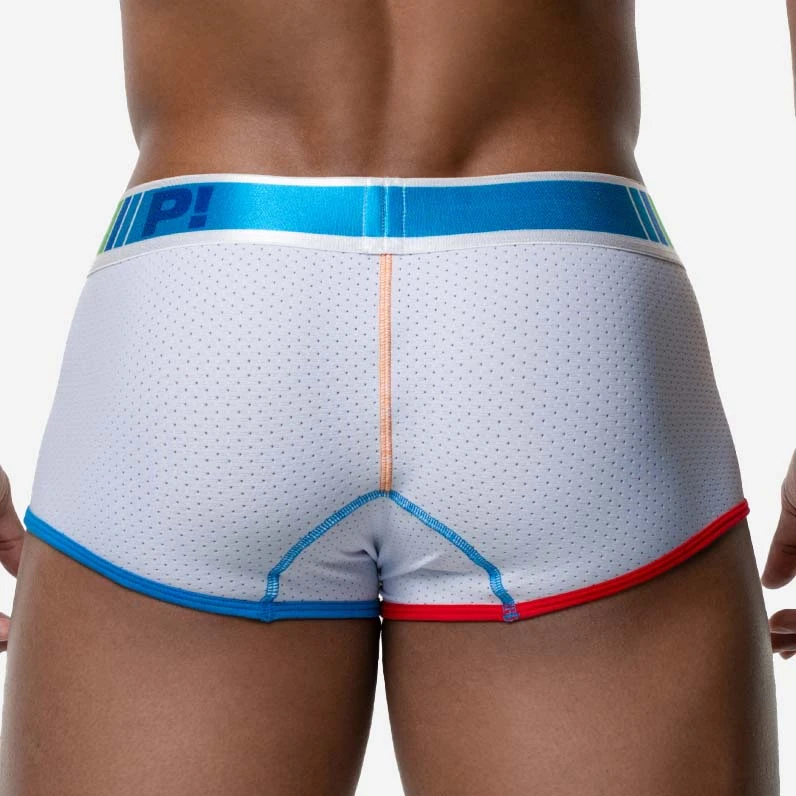 Boxer Pump! Spectrum 11118. Boxer taille basse très doux et confortable. Ceinture élastique large logotée PUMP!. Maintien optimal pour être porté tout au long de la journée. Tissu mesh respirant. Bordures de couleurs contrastées Pride. 92% Coton, 8% Elasthanne.
