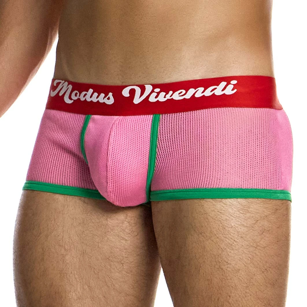 Boxer Retro Modus Vivendi 05521. MODUS VIVENDI présente sa nouvelle collection : Retro. Des sous-vêtements fabriqués en coton mesh, semi transparent. Ceinture élastique logotée au nom de la marque style retro. Bordures de couleur contrastée. 100% Coton