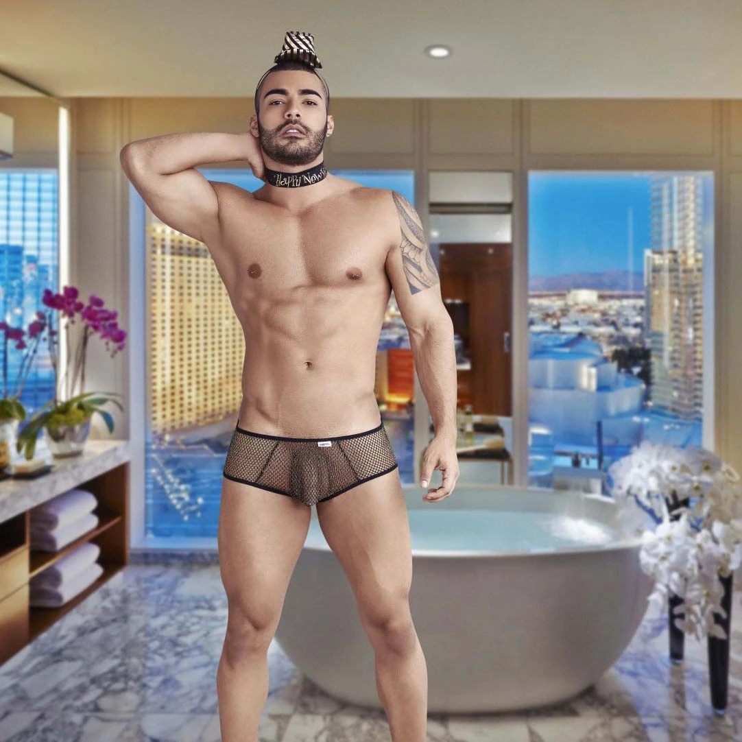 Costume Candyman 99358. Ce costume est composé dun slip en maille ajourée et brillante, dun petit chapeau et un collier logoté Happy New Year. Avec ce costume soyez prêt pour faire la fête ! Cet ensemble pourra pimenter votre jeu de séduction. 87% Nylon, 5% Elasthanne, 8% Lurex.