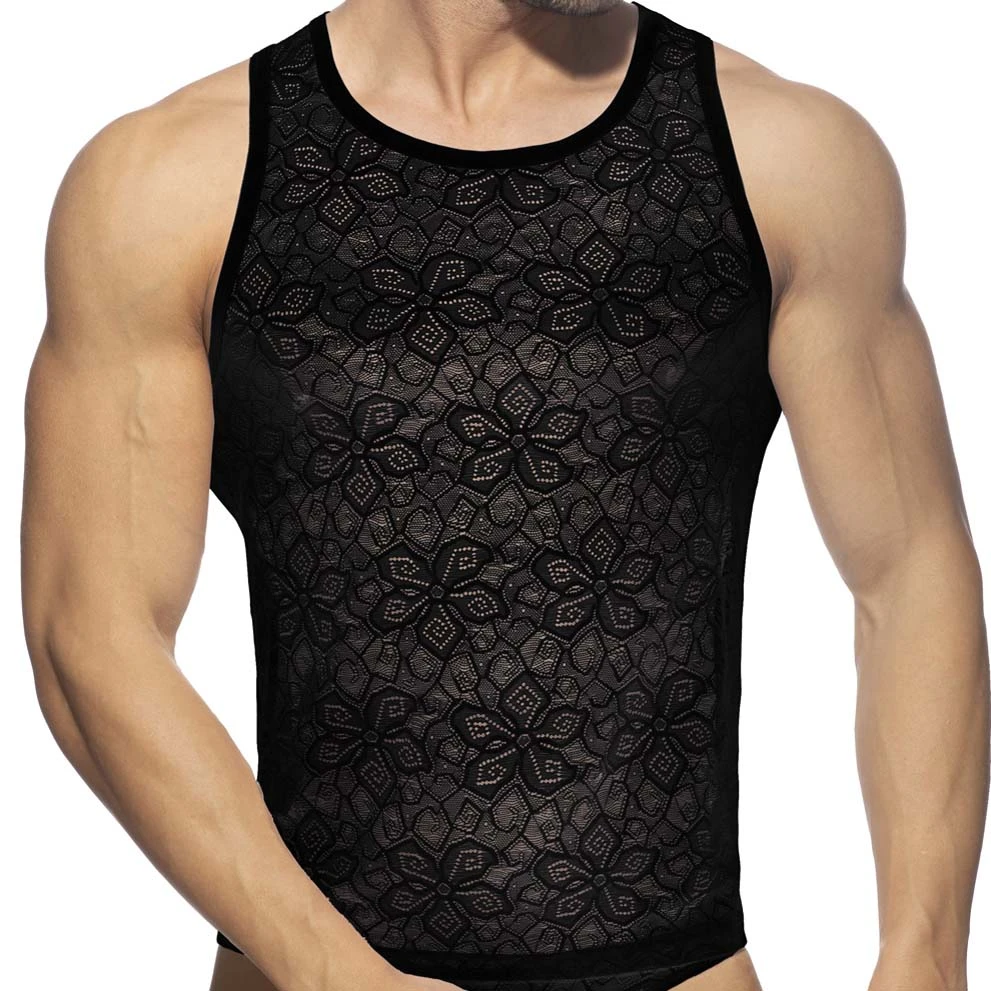 Débardeur Addicted Flowery Lace AD1077. Débardeur sexy confectionné avec une dentelle de haute qualité. Logo AD en silicone sur le haut du dos. Coupe slim. 80% Polyamide, 15% élasthanne, 5% Coton.