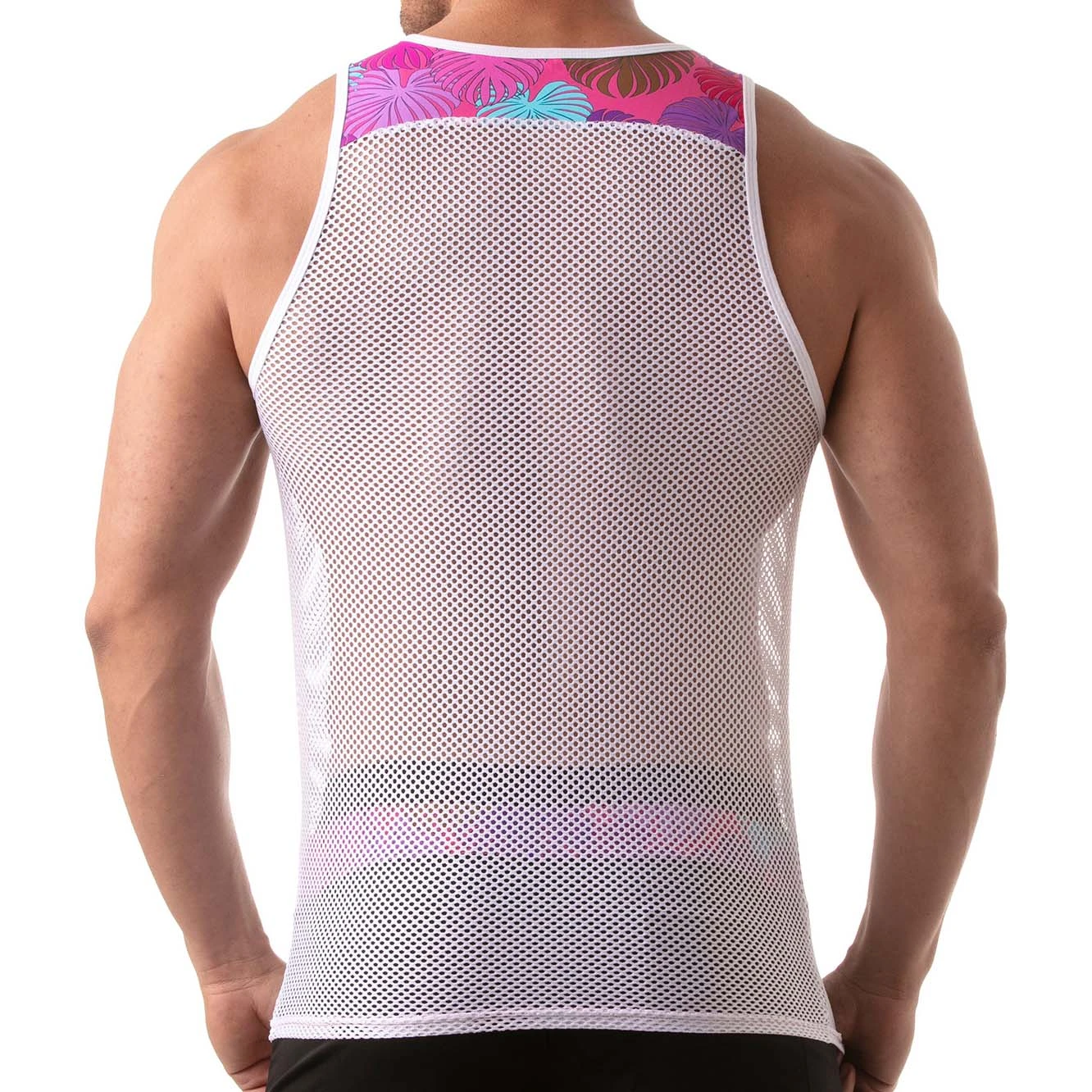 Débardeur Floral Mesh TOF PARIS TOF196P. Débardeur bi-matière en mesh et microfibre polyamide. Dans une Coupe originale légèrement évasée. Empiècement en imprimé floral dos et devant. Tissu ajouré. Logo TOF en silicone cousu sur la poitrine. 86% Polyamide, 14% Elasthanne.