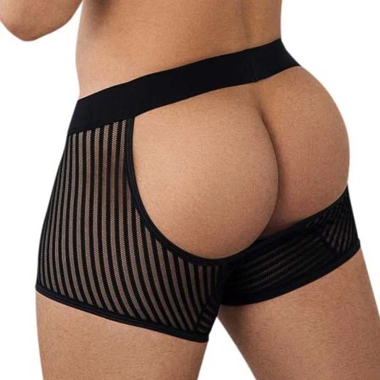 Empty Bottom Candyman 99636. Boxer ouvert à l’arrière. Poche avant ajustable Très sexy. 85% Nylon, 15% Elasthanne.