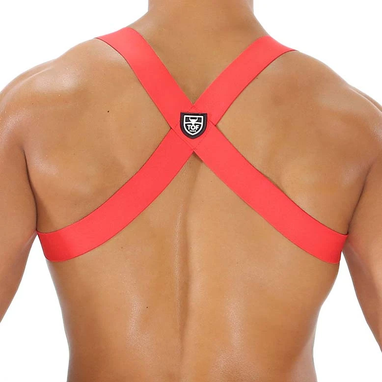 Harnais Party Boy TOF PARIS H0018R. Harnais léger et confortable avec sa matière en microfibre. Cet harnais met en valeur votre torse et votre dos. Ecusson au nom de la marque au dos.Tour de Poitrine XSS 84-95cm, ML 95-104cm, XLXXL 104-114cm. 56% Polyester, 26% Polyamide, 18% Elasthanne.