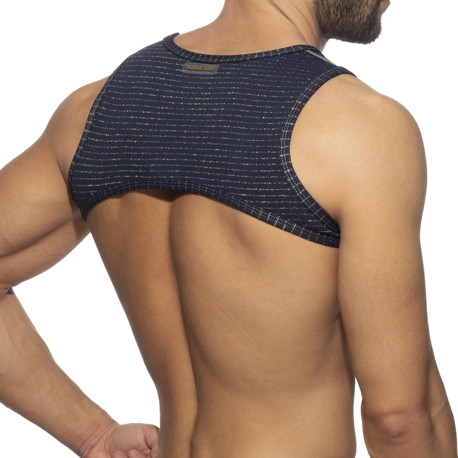 Harnais Reversible Regal AD1304. Harnais entièrement réversible avec deux designs de chaque côté. Grâce à la technologie U-Turn, ce harnais extravagant et élégant brodée dor, présente deux looks avec des détails différents. 87% POLYAMIDE – 10% ELASTHANNE – 3% METAL