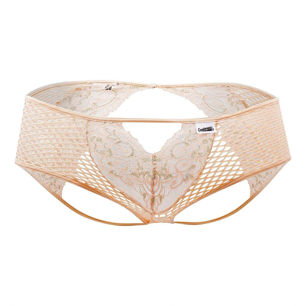 Jock Strap Candyman Tangerine 99429. Jock strap très sexy avec sa dentelle sur le devant et sur larrière et son tissu maillé sur les côtés. Fine ceinture élastique. A porter sans modération ! 97% Nylon, 3% Elasthanne.
