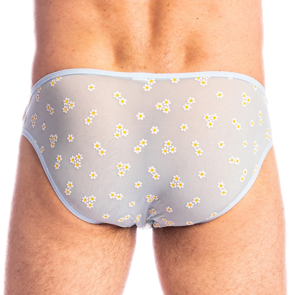 Mini Slip L Homme Invisible Paradiso MY44PAR. Réalisé dans une matière fine, délicate et transparente recouverte de pâquerettes en 3D en provenance dItalie. Vous serez conquis par ces romantiques fleurs sur fond bleu ciel. Ses fleurs floquées accordées avec une ceinture ciel pour un sous-vêtement homme chic et sensuel. 77% Polyamide, 23% Elasthanne.