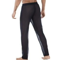 Pantalon L Homme Invisible Eccitante HW144. Pantalon loungewear homme. Laissez-vous surprendre par la dentelle noire sertie de beaux motifs organiques est légÚrement transparent. Succombez au confort sensuel avec sa taille élastique. Poches de chaque cÎtés. 93% Polyamide, 7% Elasthanne.