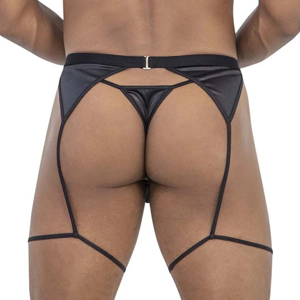 Slips, shortys échancrés et ouverts sur les fesses avec un système de lanières. Dentelle, nylon, polyester, coton, élasthanne, vinyle, cuir. Toutes les matières sont utilisées pour montrer le côté
