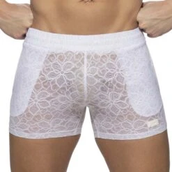 Short Addicted Flowery Lace AD1188. Short Fantaisie en dentelle fleurie . Poches de chaque côtés. Logo AD en silicone sur la jambe gauche. Cordons avant pour un meilleur ajustement. 85% Polyamide, 15% Elasthanne