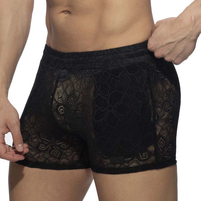 Short Addicted Flowery Lace AD1188. Short Fantaisie en dentelle fleurie . Poches de chaque côtés. Logo AD en silicone sur la jambe gauche. Cordons avant pour un meilleur ajustement. 85% Polyamide, 15% Elasthanne