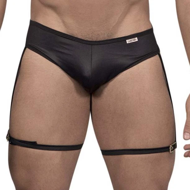 Slip Candyman Garter 99468. Slip très sexy qui joue la carte de la sensualité avec des lanières sur les cuisses. 88% Polyamide, 12% Elasthanne.