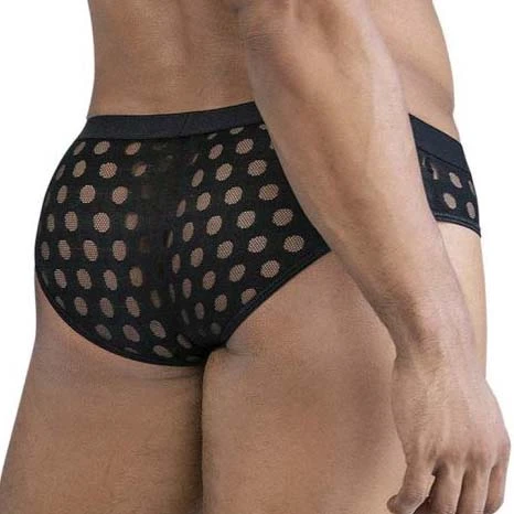 Slip Candyman Polka Mesh 99855. Slip en maille semi-transparente à pois, ce sous-vêtement dévoile juste ce qu’il faut de vous, tout en alliant élégance et confort. Doté d’une poche profilée pour un maintien optimal et d’une ceinture élastique pour un ajustement parfait, il allie à la perfection provocation et praticité. 92% Polyamide, 8% Elasthanne.
