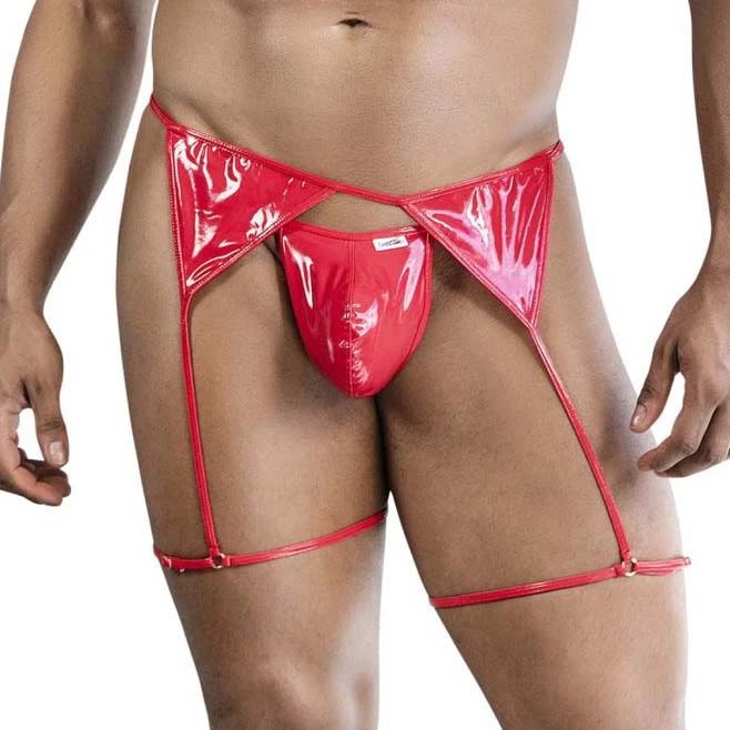 String Candyman 99825. String qui présente un effet mouillé. Des jarretelles sensuelles et un dos string révélateur. La poche avant offre une couverture minimale pour un look audacieux et séduisant, tandis que les porte-jarretelles attachés sétendent le long des cuisses, créant un design audacieux dinspiration fétichiste. Parfait pour ceux qui aiment la lingerie avec une touche audacieuse. 96% Polyester, 4% Elasthanne.