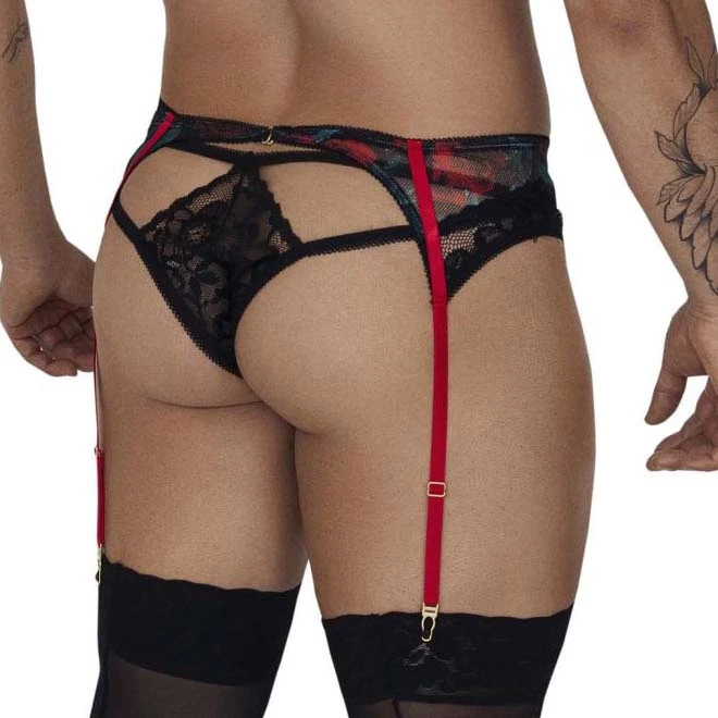 String Candyman Garter 99688. String jarretière confortable Fabriqué à partir de tissu extensible doux, ce String offre une couverture minimale à lavant et à larrière. 94% Polyamide, 6% Elasthanne.