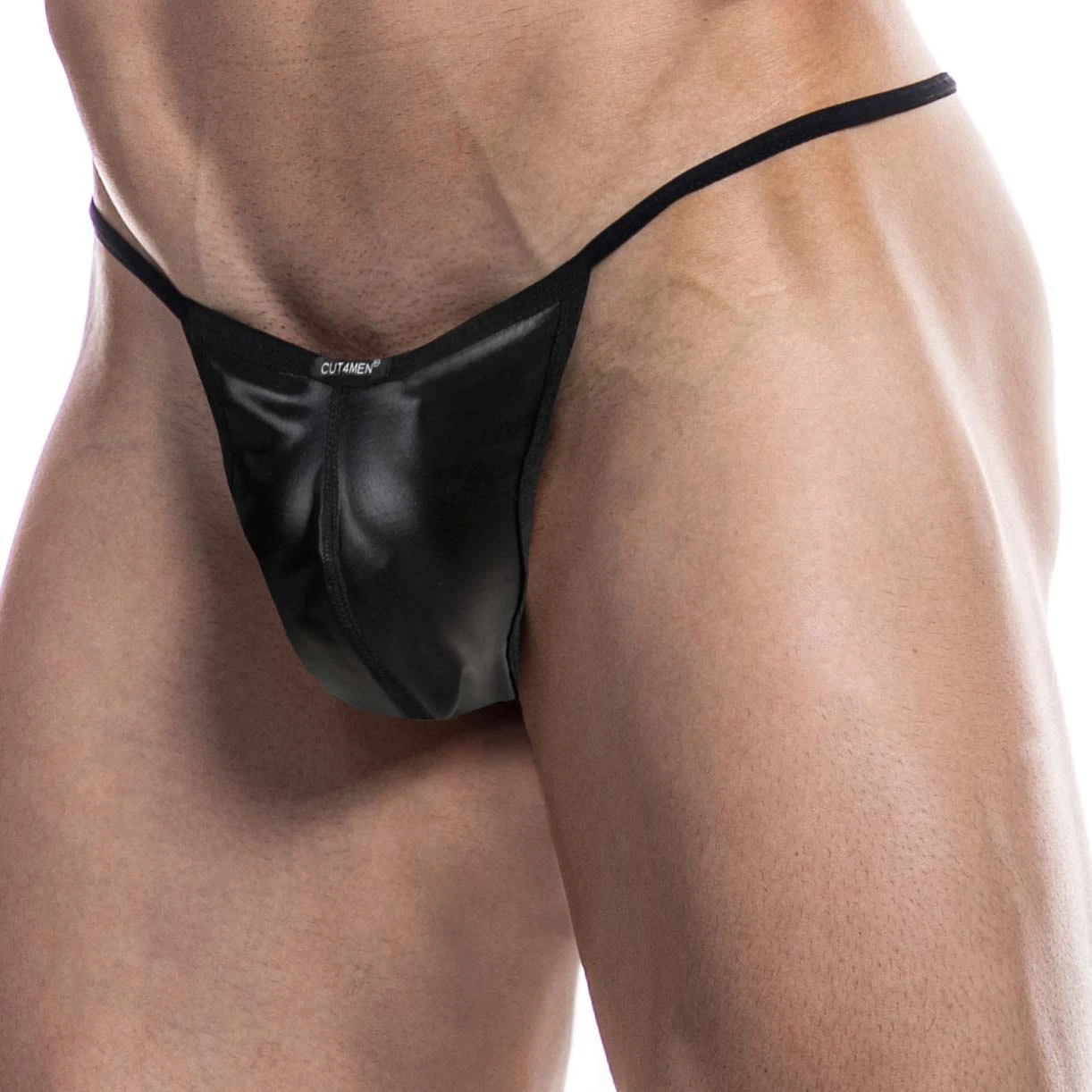 String Cut4Men Black Leatherette C4M02. String taille basse. Très sexy grâce à sa coupe ajustée. Ultra confortable, coutures invisibles. Excellent soutien frontal. 93% Polyester, 7% Elasthanne.