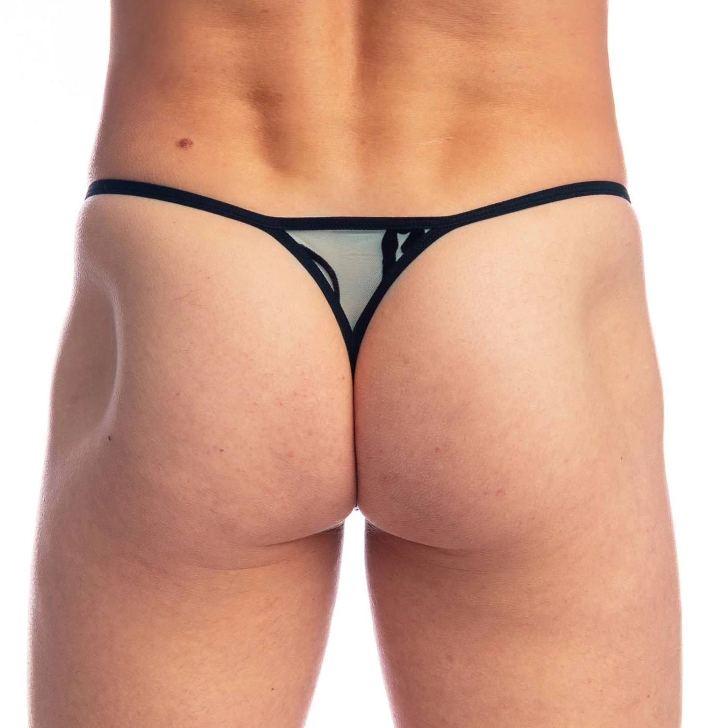 String L Homme Invisible Velours Mystique UW21XVEL. Une pièce ultra sexy, entièrement transparent. Le string est fabriqué en tulle turquoise, orné de velours floqué noir. La poche frontale ergonomique assure un maintien naturel, sans compression. String non doublé, afin de laisser pleinement sexprimer la légèreté et la finesse de la matière. Les deux fermoirs latéraux à la taille permettent un retrait rapide dun simple geste. Sa coupe string avec dos en Y met en valeur les fesses et allonge la silhouette, dans un style à la fois élégant, sexy et audacieux. 80% Polyamide, 20% Elasthanne.