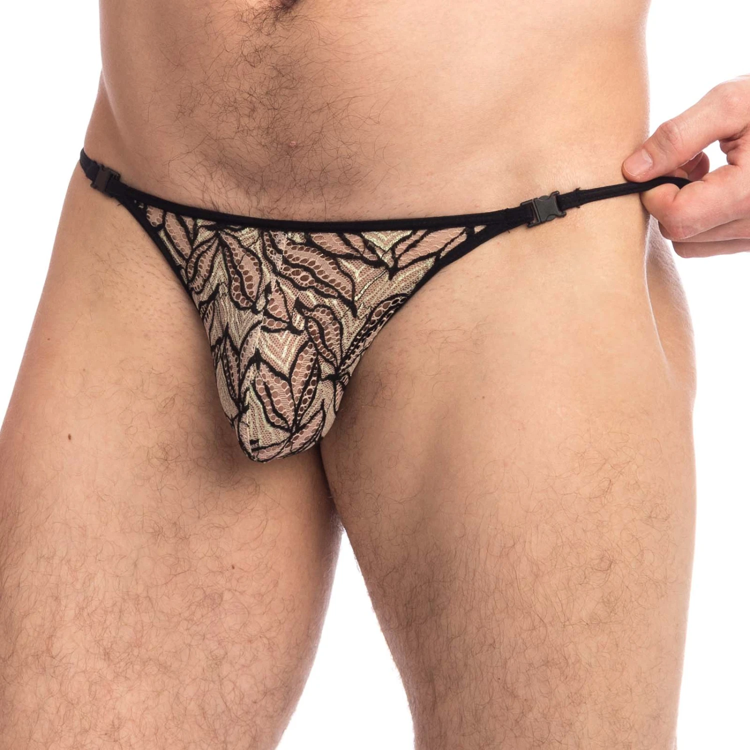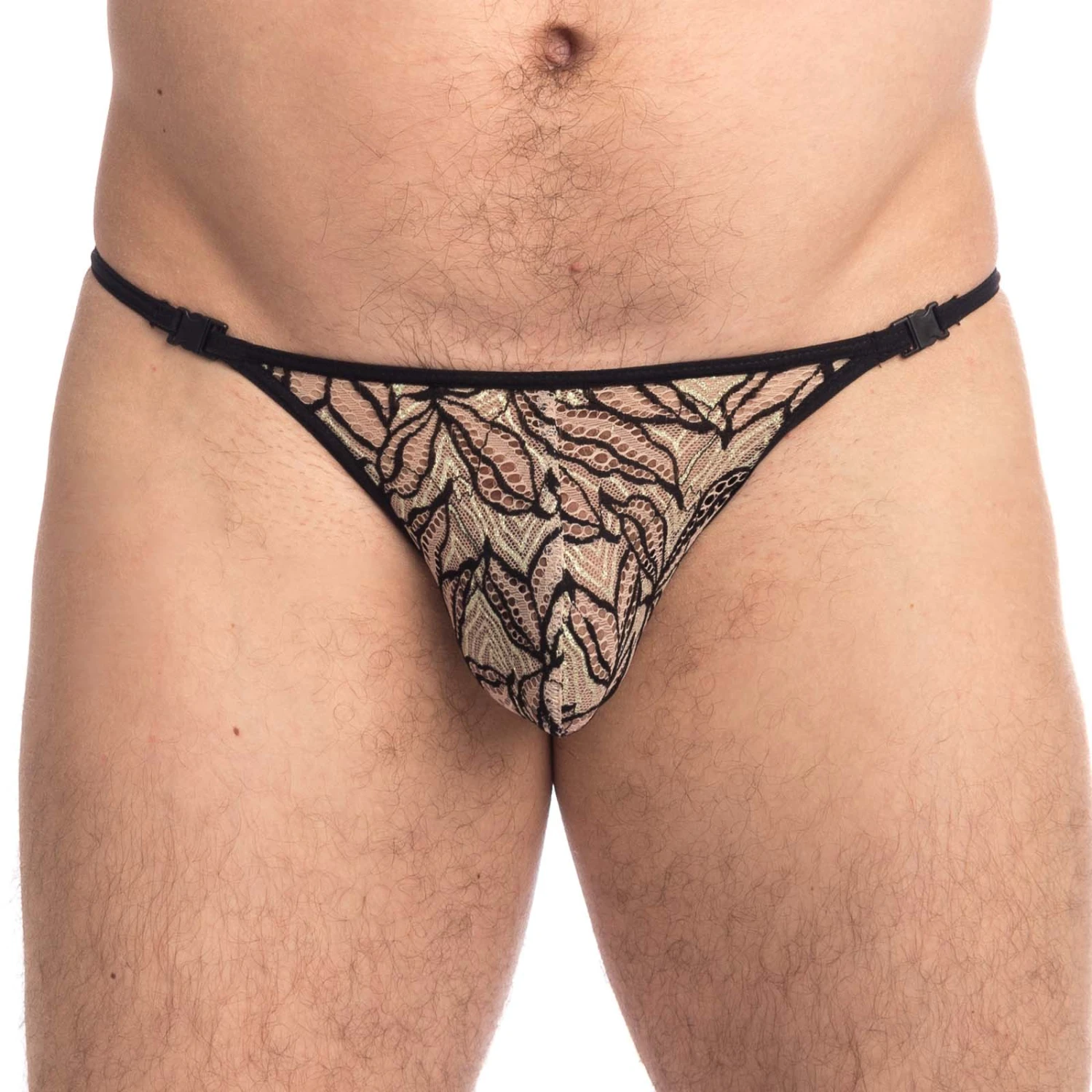 String L Homme Invisible Vespertine UW08VES. Découvrez le charme irrésistible de ce string effet striptease. Très belle matière en dentelle avec des couleurs crépusculaires ornées de fils lurex ton sur ton fera de vous une luciole qui scintille le soir et nous émerveille. String non doublé pour une légèreté absolue. Le dos en Y mettra vos fesses en valeur. Les deux fermoirs sur les côtés permettent d enlever ce string d un revers de pouce. Une somptueuse collection alliant douceur et élégance pour être romantique plus que jamais. 75% Polyamide, 25% Elasthanne.