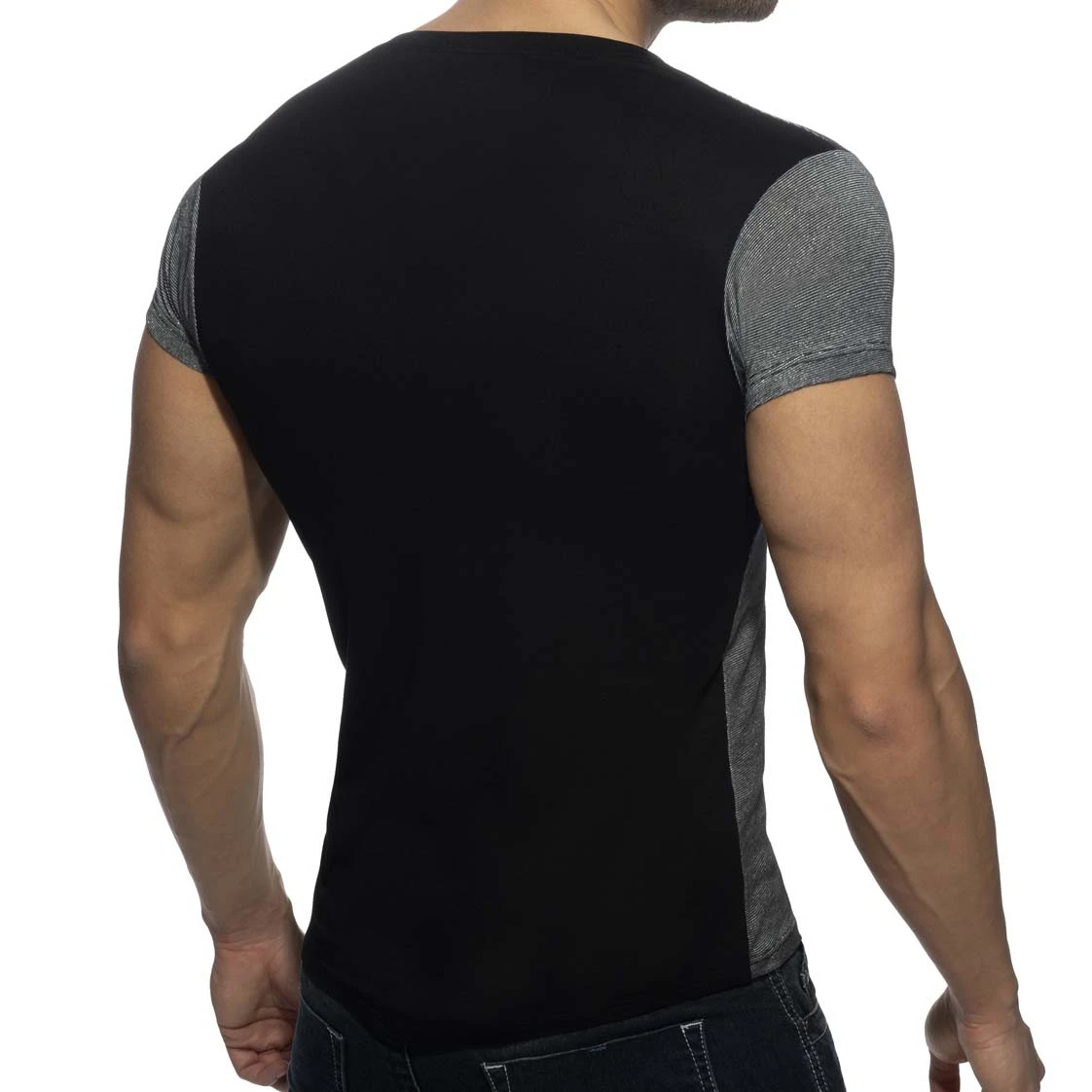 T-Shirt Addicted Mini Stripes AD901. T-Shirt athlĂ©tique et confortable pour la pratique de votre sport prĂ©fĂ©rĂ©. Col V. Logo Ă lâavant du modĂšle. Noir uni Ă lâarriĂšre. Tissu Zigzag brillant et doux. 50% Viscose, 40% Polyester, 10% Ălasthanne.
