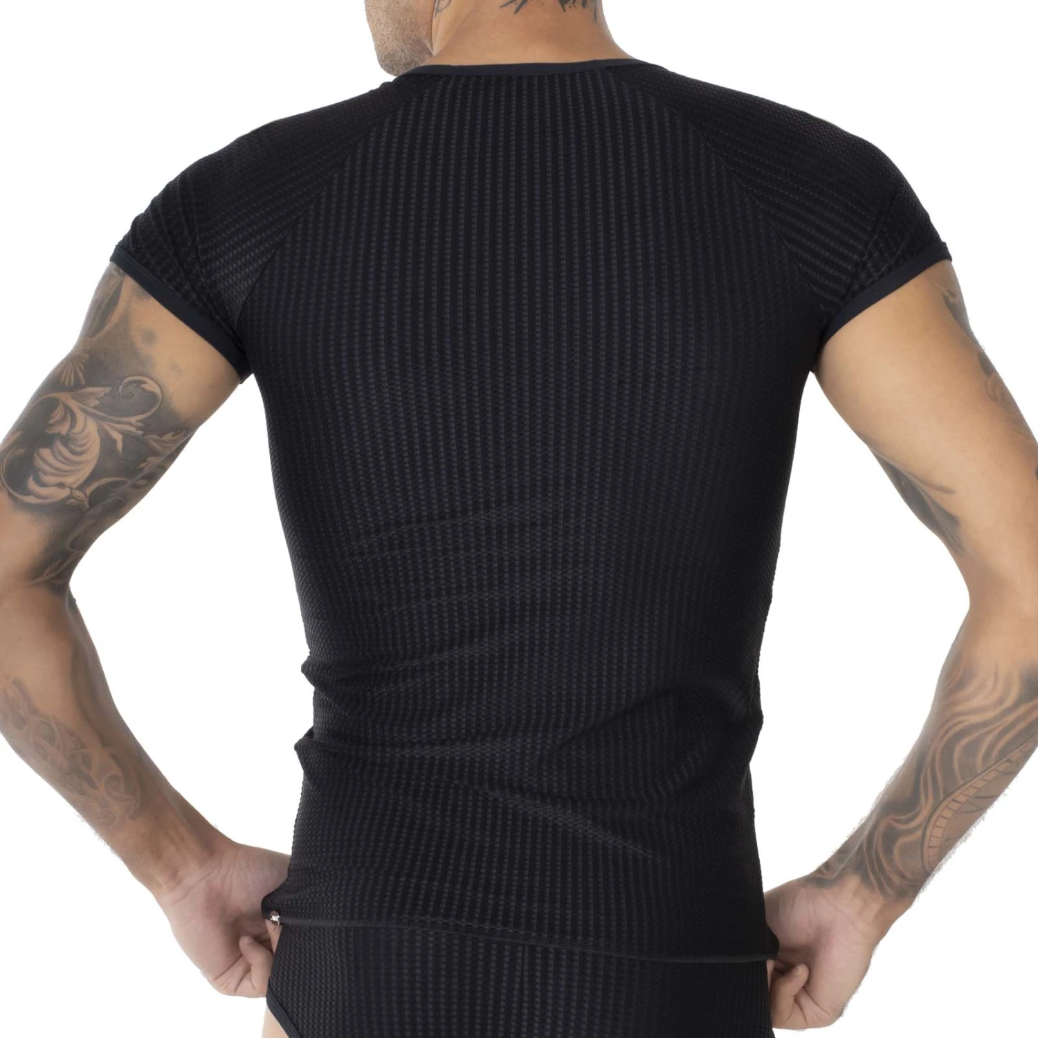 T-Shirt Eros Veneziani 7397. T-Shirt en maille côtelée, très sexy. Matière très agréable à porter. T-shirt col rond. 85% Polyamide, 15% Elasthanne.