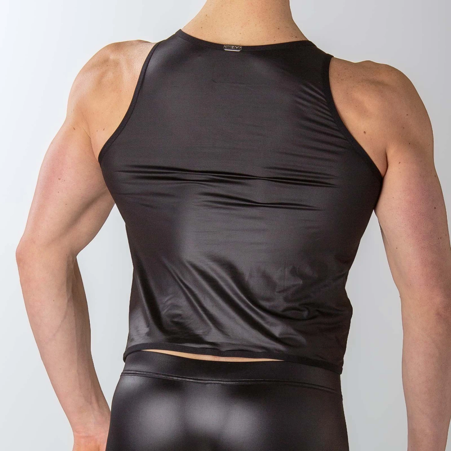 WOH Debardeur Night Universe 463029. Debardeur trÚs sexy dans une matiÚre imitant le cuir. Laçage sur le torse façon corset. 86% Polyester,14% Elasthanne.